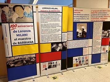 Una docena de paneles informativos sobre Barbiana y Milani han recorrido escuelas y universidades por toda España a lo largo del centenario de Milani y siguen a disposición de quien los pida