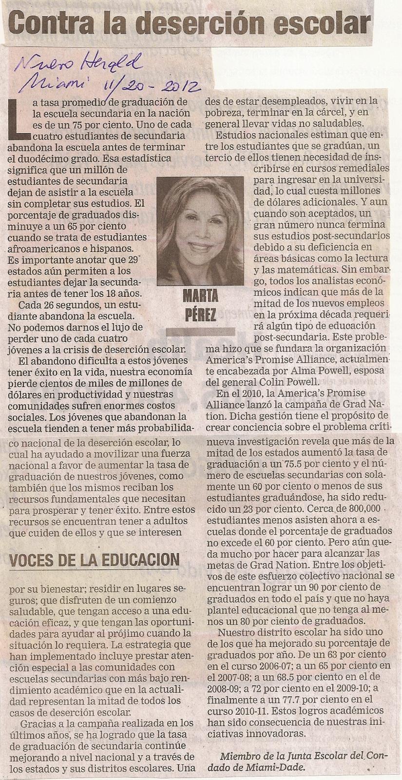 Nos envían un recorte de prensa desde Miami - en español - con datos sobre el fracaso escolar y con el número de graduados que requieren después "cursos remediales" para acceder a estudios superiores...